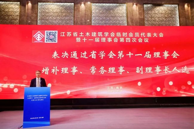 2025年4月2日,江苏省土木建筑学会在南京召开临时会员代表大会暨十一届理事会第四次会议,江苏省科学技术协会党组成员、副主席冯少东,江苏省土木建筑学会理事长、中国工程院院士缪昌文,副理事长路宏伟、吴智深、刘永刚、张雁、王华,秘书长卢红标,原江苏省交通工程建设局局长蒋振雄,江苏省土木建筑学会监事会主席徐岳,省学会第十一届理事会、监事会成员,会员代表400余人参会。