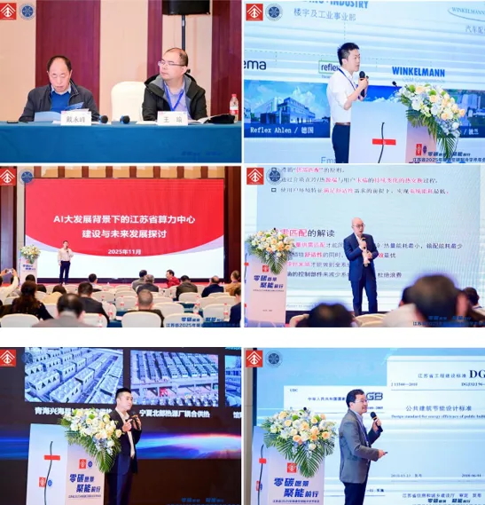 下半场主题报告由浙江省建筑设计研究院有限公司暖通总工金华飞、格瑞海思人居环境科技(江苏)有限公司总经理何强勇、江苏野牛暖通设备有限公司董事长郑志连、江苏筑森建筑设计有限公司暖通总工雷栋、方快锅炉有限公司研发总监卢洁、北京京创鑫业科技有限公司总经理赵东方、瑞福莱暖通设备(上海)有限公司总经理杨颖、中通服咨询设计研究院数据中心行业中心副主任戴新强、杭州卓邦环境设备有限公司技术总工朱建军、丹佛斯(中国)投资有限公司应用技术专家付世元、南京天加环境科技有限公司商用事业部总经理赵凌骁、江苏省建筑设计研究院股份有限公司暖通总工夏卓平分别以“空调系统数字化节能运行的研究与实践”“精准控湿·节能零碳——格瑞工业恒温恒湿系统在高端制造中的创新实践”“驭风而行,智造未来”“基于数据分析下的商业综合体负荷计算思考”“烟气源热泵在供暖与工业的节能应用”“高大空间专用空调应用场景展示”“空调水系统定压排气关键技术及解决方案”“"AI大发展背景下,江苏省算力中心建设布局与未来发展探讨”“好房子卓邦解决方案之新风恒湿与地库除湿”“智能精确控制-暖通空调系统高效解决方案”“"SEE MY GROWTH-细分行业解决方案分享”“江苏省公共建筑节能目标研究及暖通空调设计”为主题作了报告。