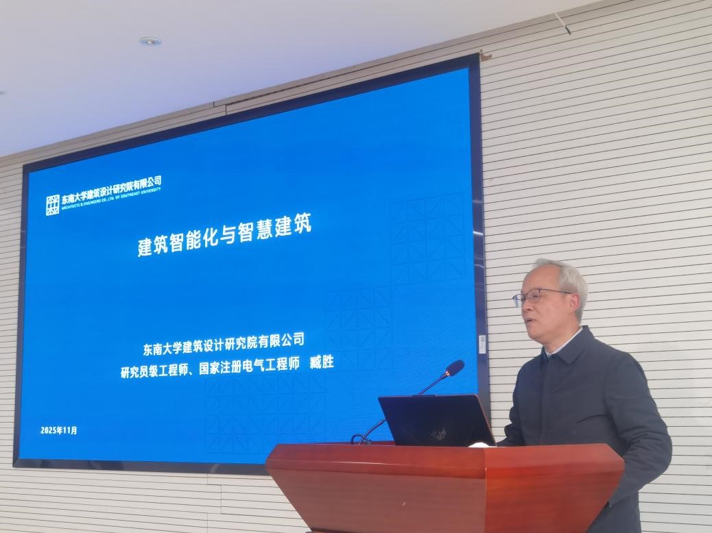 江苏省土木建筑学会智能建筑与智慧城市专业委员会臧胜主任委员作“智能建筑与智慧建筑之浅识”专题报告,他向同学们分享了自己45年的学习及工作心得,回顾了我国智能建筑与智慧城市行业的发展历程,并结合大数据、AI人工智能、超算等信息技术发展阐述了智慧建筑的发展趋势。