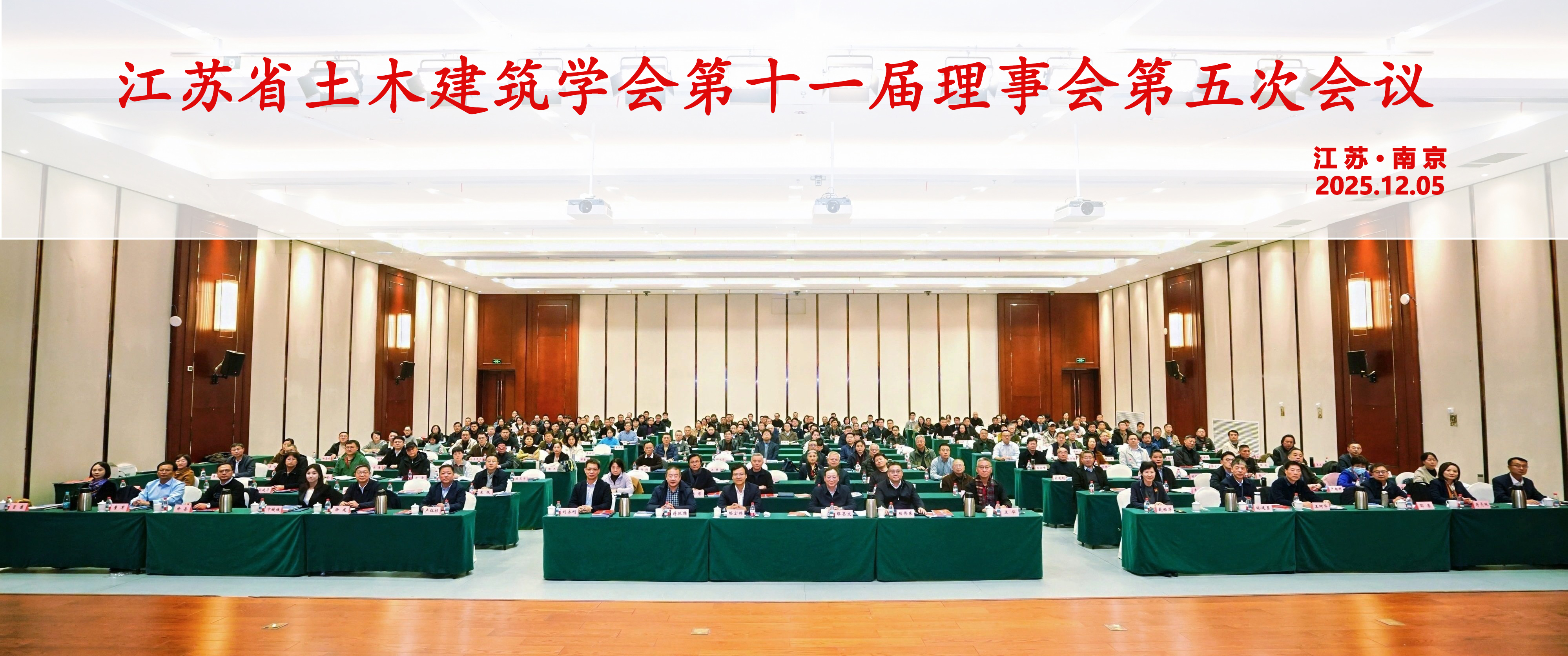 2025年12月5日,江苏省土木建筑学会在南京召开第十一届理事会第五次会议,江苏省土木建筑学会理事长缪昌文院士、副理事长路宏伟、陆伟东、蒋振雄、刘永刚、王华,秘书长卢红标,启迪设计集团荣誉董事长戴雅萍,江苏省土木建筑学会监事会主席徐岳,江苏省土木建筑学会第十一届理事会、监事会成员,2025年江苏省土木建筑学会科学技术奖获奖代表共200余人参会,《土木工程与绿色建筑》杂志提供媒体支持。