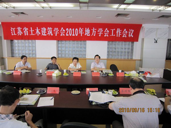 江苏省土木建筑学会2010年地方学会工作会议于2010年9月15日—17日在泰州市住房和城乡建设局隆重召开。江苏省土木建筑学会和来自全省各市参加会议的有:南京、镇江、常州、无锡、苏州、江阴、常熟、宜兴、扬州、徐州、南通、连云港、泰州、淮安及省土建学会共计15个市级土木建筑学会的负责同志26位代表出席了会议,盐城市土木建筑学会因故缺席。